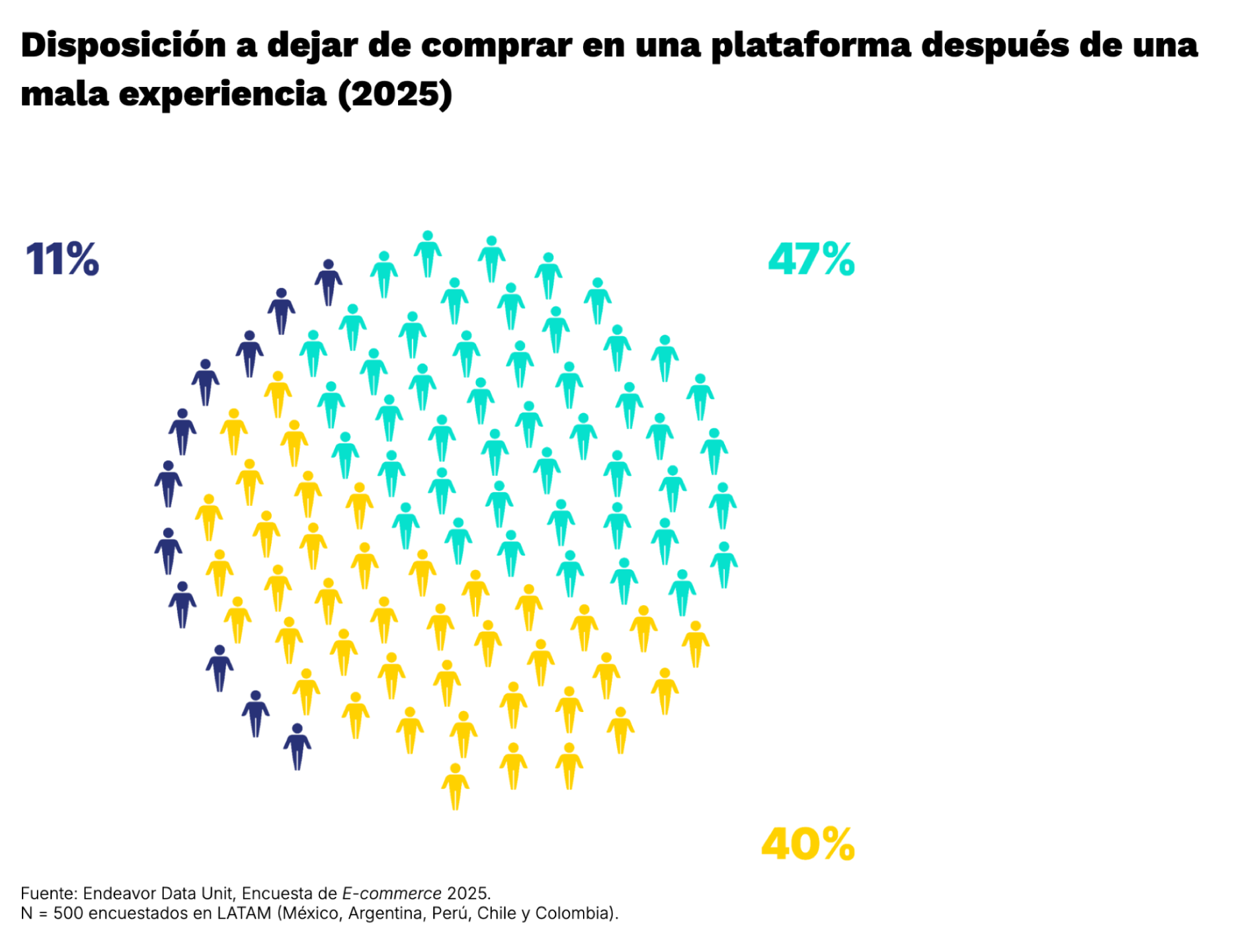 A medida que la industria evoluciona con rapidez, también lo hace el consumidor digital latinoamericano: es más exigente, menos tolerante y espera experiencias fluidas y móviles por diseño: hoy, 84% de las compras en línea se realizan desde smartphones. Cuando esas expectativas no se cumplen, la lealtad se vuelve frágil: la mitad de los usuarios abandonaría una plataforma tras una sola mala experiencia, reflejo tanto de expectativas más altas como de un marcado pragmatismo económico.