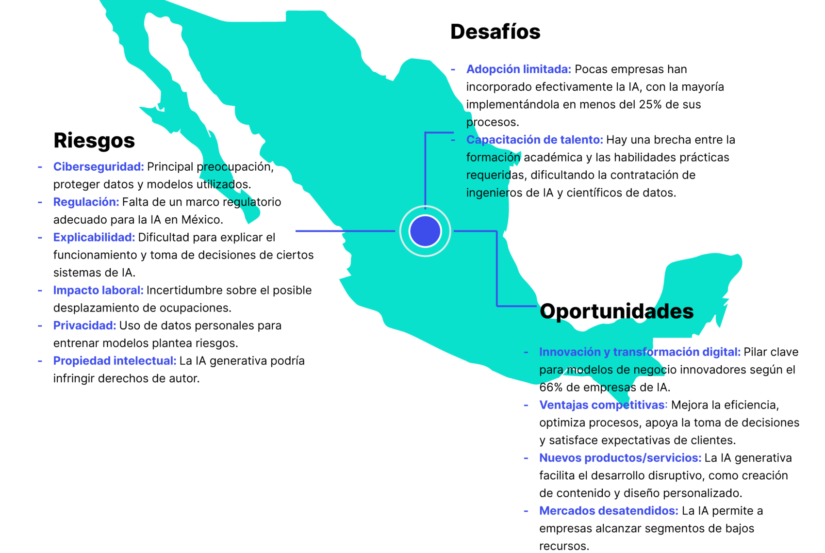 Más recientemente, La Alianza Nacional de Inteligencia Artificial (ANIA) asume una misión y visión similares, culminando en la Propuesta de Agenda Nacional de Inteligencia Artificial de México, con consideraciones para 2024-2030.